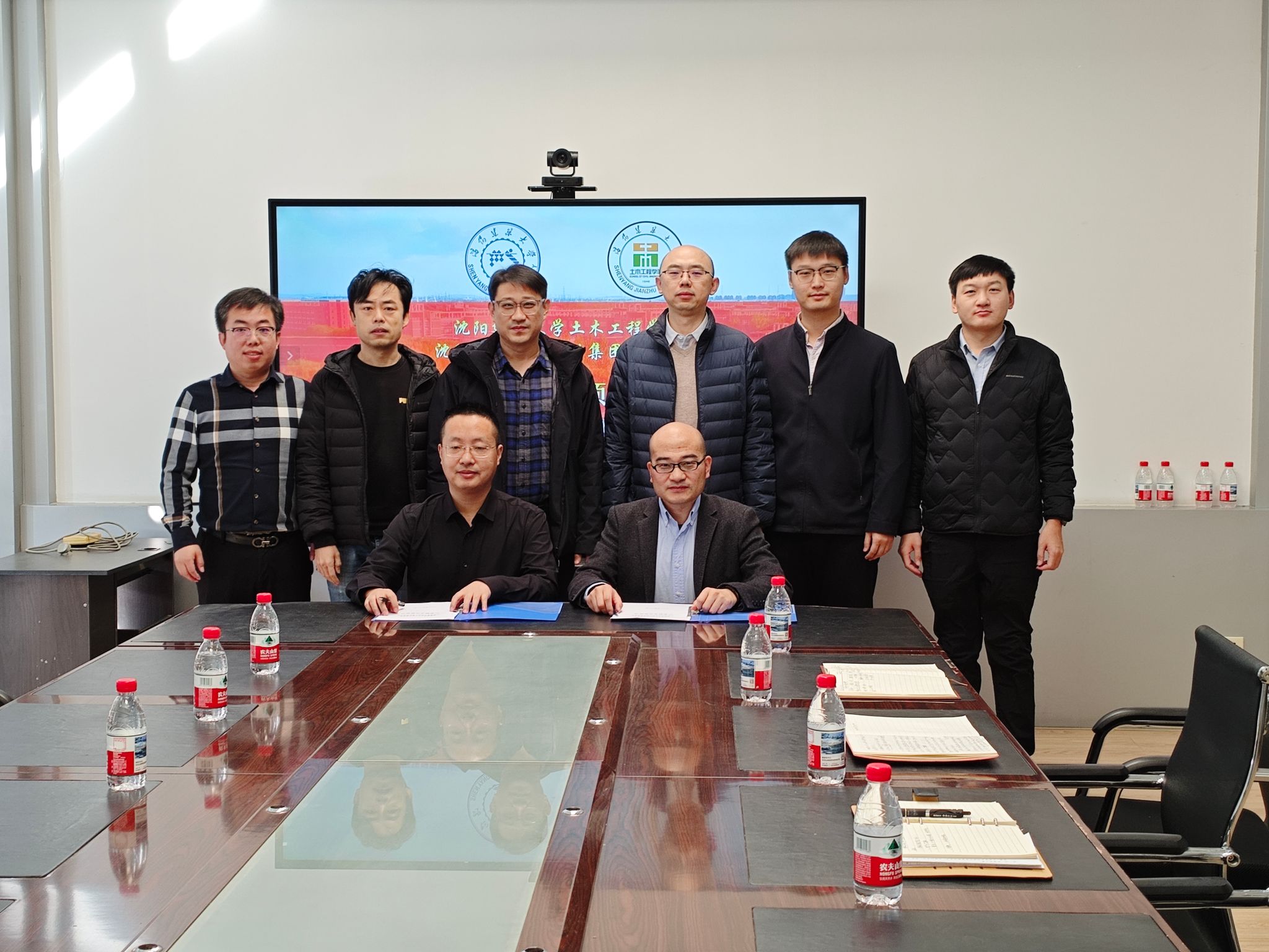 沈阳建筑大学土木工程学院院长杨志坚携相关业务负责人,沈阳建筑大学设计集团有限公司董事长、总经理谢占宇、资产经营管理中心党总支书记蒋宏伟及集团各部门负责人出席座谈会暨签约仪式。