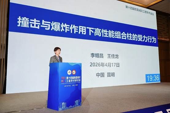 会上,李帼昌教授作了题为“撞击与爆炸作用下高性能组合柱的受力行为”的报告。报告开篇,她结合我国建筑结构向高层化、大跨度发展的现实背景,深入剖析了由此导致的构件截面过大、施工困难及自然资源消耗过高等突出问题。针对上述问题,她提出了新型高性能内置工字形CFRP-方钢管混凝土(SCFST-CFRP)组合柱,为高烈度设防区及重点设防建筑提供了更优的结构解决方案。