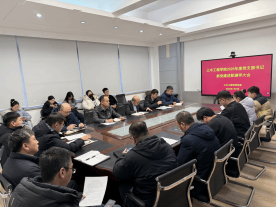 为全面梳理总结全年党建工作,进一步谋划好2026年党建工作目标任务,1月7日土木工程学院党委召开2025年度党支部书记抓党建工作述职评议会议。学院党委委员、党政领导班子成员、全体党支部书记、党政办公室人员参加了会议。