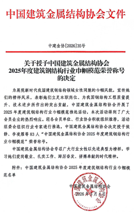近日,中国建筑金属结构协会发布了《关于授予中国建筑金属结构协会2025年度建筑钢结构行业巾帼模范荣誉称号的决定》,该评选旨在展现新时代我国建筑钢结构领域女性同胞的巾帼风貌,表彰被授予称号的女性工作者为我国钢结构工程质量提升、技术进步所作出的突出贡献。全国范围内评选出83名“中国建筑金属结构协会2025年度建筑钢结构行业巾帼模范”,我院邱增美副教授获此殊荣。